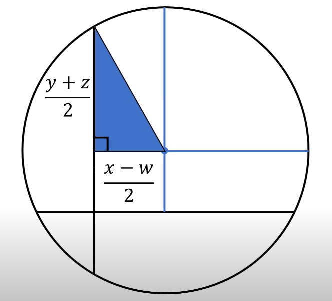 그리고는 원의 중심과 y-z선이 이루는 직각삼각형을 만들 수 있다.