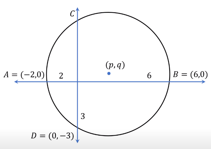 $$(6-p)^2+q^2 = r^2$$