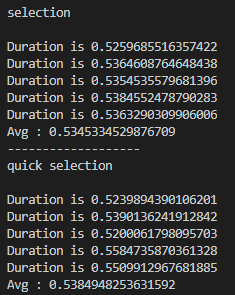 다음 코드는 내가 사용한 k까지의 선택정렬과 quick selection의 코드이다.